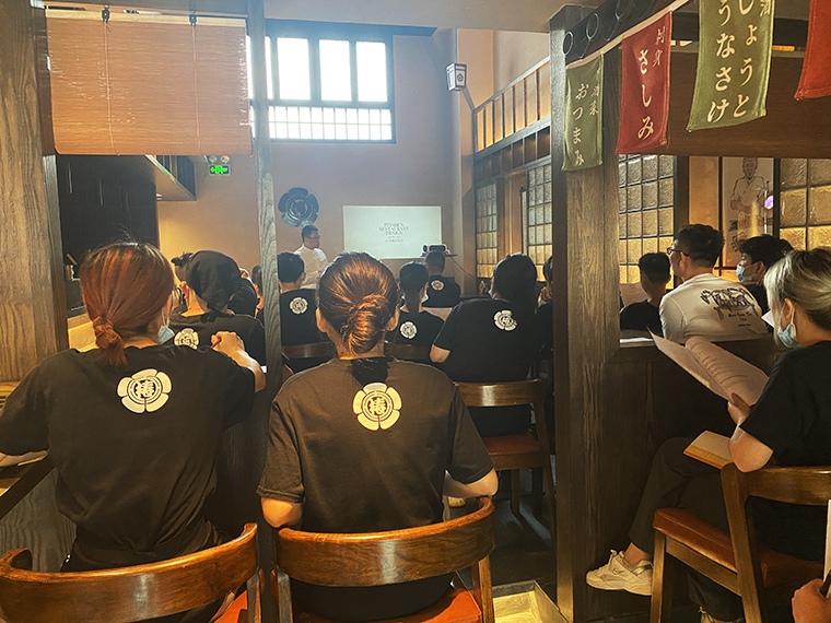 如:品深餐飲全案策劃設計的玉椿燒鳥居酒屋,設計師通過國畫手繪小品的形式展示燒鳥的制作過程,巧妙的結合在形象墻上,消費者在享受美食的同時,也理解了燒鳥的知識從而記住了玉椿燒鳥品牌。