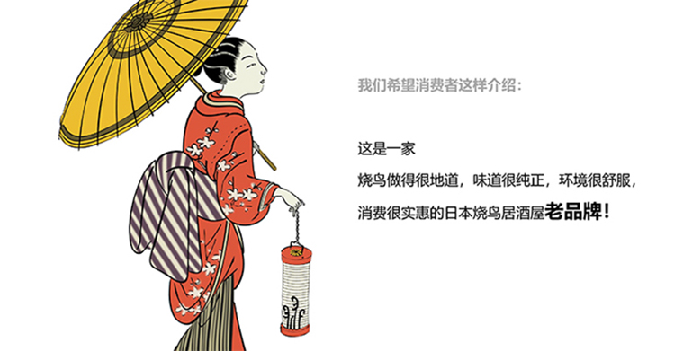 我們還需要在品牌中加入一些話語以突出我們的核心特色,并且與餐飲屬性連接更加緊密。我們提出“京都味道,匠傳玉椿”,不斷強調品牌源自江戶時代的京都地區,燒鳥很地道,味道很純正,再用匠傳表達玉椿用心經營,匠心傳承的初心理念。