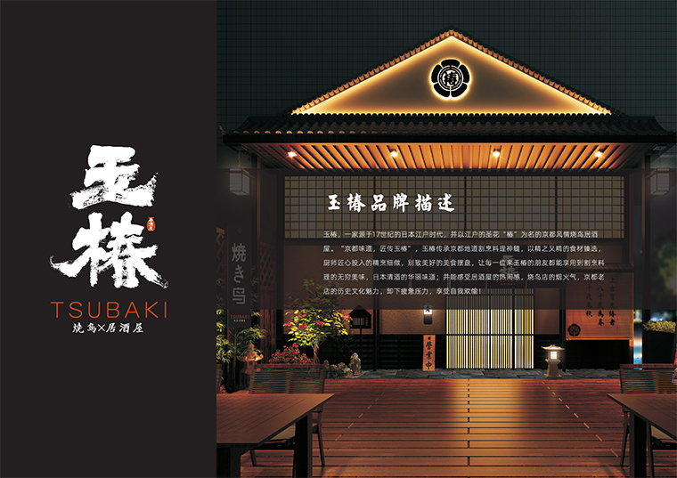品深餐飲團隊給玉椿的定位表述為 “京都味道,匠傳玉椿”,我們精心設計的品牌徽章,既表明品牌純正日本燒鳥居酒屋的血統屬性,也昭示我們用心經營,代代傳承的理念與決心。