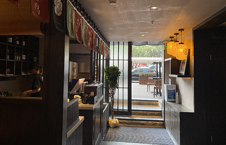 門口的日式推拉門、地燈、青石板、椿花樹、炭黑色的日式布簾、遮蓋燃氣表箱體的竹制卷簾,整個門頭把日本京都特征表達地非常鮮明且形式經典,識別度極高。