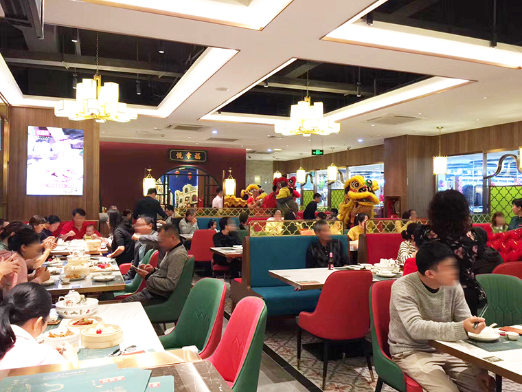 2019年12月25日品深餐飲設計全案服務品牌悅得閑廣式點心茶樓南嶺店正式開業,開業當天,顧客盈門,喜慶熱鬧。
