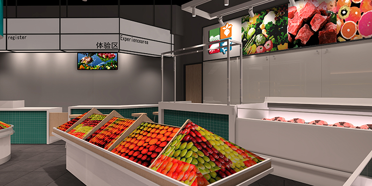 社區(qū)生鮮連鎖店裝飾裝修設(shè)計(jì)、生鮮連鎖店形象設(shè)計(jì)、生鮮連鎖店軟裝燈光設(shè)計(jì)。