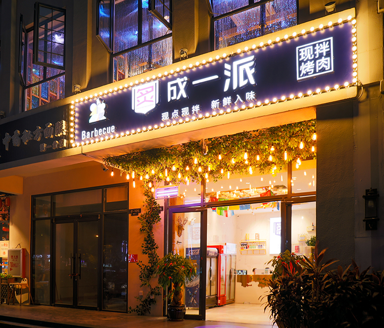 炙成一派作為??谑准椰F(xiàn)拌烤肉,具有明顯的市場先發(fā)優(yōu)勢,在空間中通過氛圍體驗(yàn),品牌訴求,在消費(fèi)者心目中植入現(xiàn)拌烤肉就是炙成一派,將品牌等同于品類。通過空間的視覺體驗(yàn),燈光感受,食物的味道,家具軟裝的觸感體驗(yàn),讓顧客能放松心情,享受美食,有情懷,有情調(diào),有趣味。顧客置身其中,心靈宣泄,釋放壓力,最終產(chǎn)生品牌的粘性和較高的復(fù)購率。
